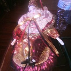 Mardi Gras Porcelain Jester Doll On Pillow $20Hawkins, TX