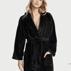 New VICTORIAS SECRET COZY SHORT PLUSH EMBOSSED LOGO BATH ROBE M-L M-G Black Color$55Fate, TX