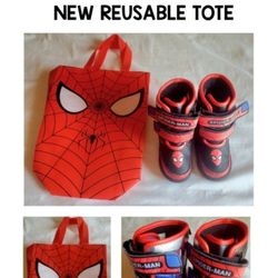 BOYS SPIDERMAN SET RAIN/SNOW BOOTS SIZE 7 AND REUSABLE TOTE BAG!$25Seven Points, TX