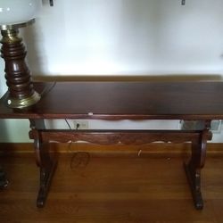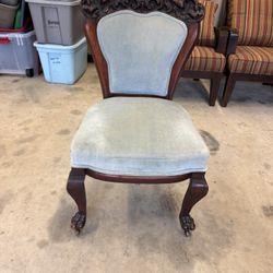 Antique Regal Slay Settee Down Cushion, 2 Leather Chairs, Patchwork Ottoman, 2 Matching Patchwork End Tables, Matching Patchwork Sofa Or Entry Table. $6,000Tyler, TX
