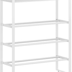 🆕️4-Tier White Shoe Rack - Movable Shoe Organizer for Closet, Entryway, Foyer
