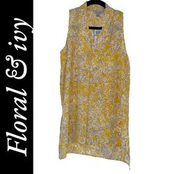 Floral & ivy top women’s small yellow grey blouse sheer tunic short sleeve new $22Terrell, TX
