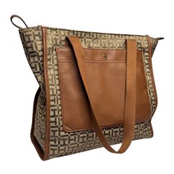 Tommy Hilfiger Brown Logo Tote Bag with Leather Trim, Shoulder Strap, Pockets$30Victoria, TX