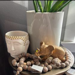 Table Top With Accessories Included Table Large Planter Egyptian Face Pot Beads And Elephant$50Corpus Christi, TX