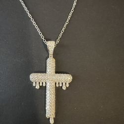 New Moissanite White Gold Rhodium Finish Cross Necklace Chain Large Size$20Mcallen, TX