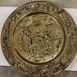 Vintage Decorative Brass Wall Plate Flue Cover Party Dinner Dining Scene 14 1/2 Inch$30Harlingen, TX