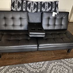 Mainstays Memory Foam 71.5" Futon with Cupholder and USB, Black Faux Leather$100Mcallen, TX