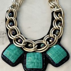 Turquoise, Swarovski, silver and pewter and necklace.$90Edinburg, TX