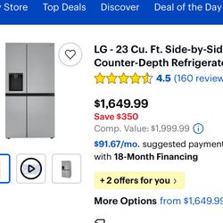LG Stainless Steel Side-by-Side Refrigerator$500Decatur, TX