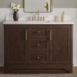 Eastwood 49 in. Single Sink Dark Walnut Bath Vanity with Carrara White Engineered Stone Top (Assembled)