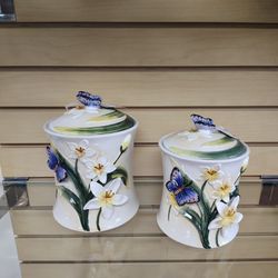 2pc Kitchen Canister / Jar / Storage container set ( NEW ) Porcelain. Butterfly blue / green$45Salt Lake City, UT