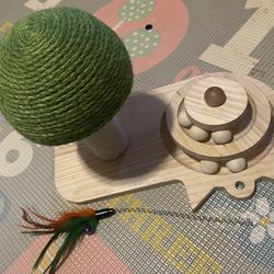 Wooden Mushroom Cat Scratcher Toy,Interactive 2-Layer Cat Turntable with Balls and Cat Feather Toy$25Salt Lake City, UT