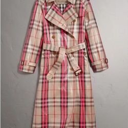 Burberry Women's Size 8 Neon Pink Plaid Trenchcoat $1,200Salt Lake City, UT