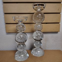 2pc Solid Glass Candle Holders set ( NEW ) bubbles. Clear. Round. Sphere. 10 & 13 inches.$65Salt Lake City, UT