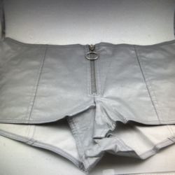 Leg Avenue Womens Size Large Silver Shiny Vinyl Short Bootie V Shorts w/ Zipper$15Salt Lake City, UT