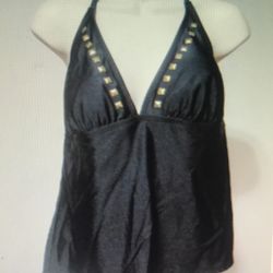 Women's Miss America by Catalina Size XL Halter Black Swim Top with Gold Details$15Salt Lake City, UT