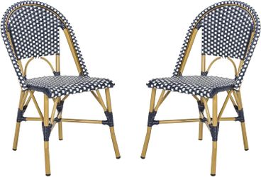 Safavieh Home Collection Hooper Indoor-Outdoor Stacking Side Chairs | Navy & White | Set of 2 Navy / White