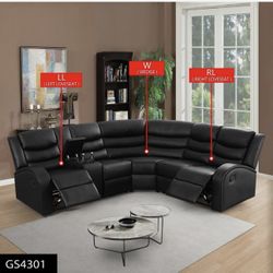 Black Semi PU Breathable Leather Living Room Recliner Intelligent 3-Pcs Sofa Set$800Salt Lake City, UT