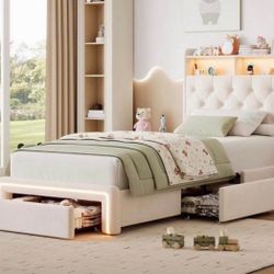 Twin size Upholstered Bed With Drawers,led Lights,bookcase And Charging Station$120Salt Lake City, UT
