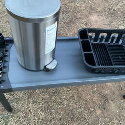 A Long Shelf With One Stainless Steel Kitchen Trash Can With Food To Open , And A Dish Rack (NO SHIPPING) All For $25$25Glenarden, MD
