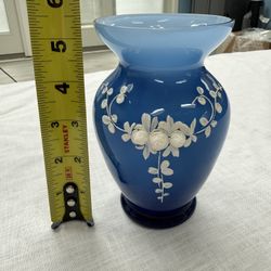 French Blue Opaline Glass Vase, Applied White Floral Decoration Pierre Schneider$55Davidsonville, MD