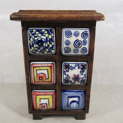 Apothecary Vintage Spice/Tea Cabinet 6 Hand Painted Ceramic Drawers