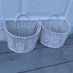 Ashland 2 White Macrame & Wire Wall /Shelf Storage Basket Organizers Boho Rope$45Germantown, MD