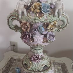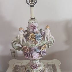 Exquisite Capodimonte Antique Italian Porcelain Cherub Angel Floral Table Lamp Made in Italy $500Clinton, MD