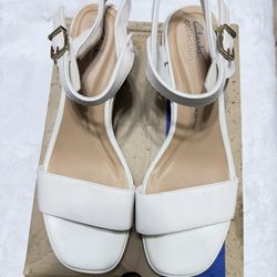Clarks White Leather Block Heel Buckle Slingback Sandals Women's Size 10M$55Frederick, MD