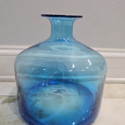 Vietri Cobalt Blue Hand Blown Glass Hibiscus Bud Vase Made In Italy