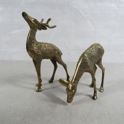 Vintage Buck & Doe Spotted Deer Solid Brass MCM Statues Figurines