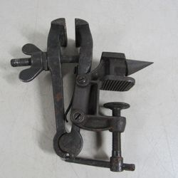 Antique USSR? Jeweler/Clockmaker Cast Iron Work Bench Clamp & Anvil