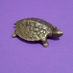 Antique solid brass fertility turtle, Celtic spirituality rubbing turtle 3.25"