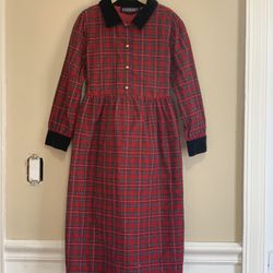 Vintage Lands’ End Girls Red Plaid Corduroy Maxi Dress 6X Black Velvet Collar$15Germantown, MD
