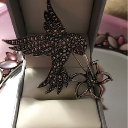 Gorgeous ! Silver Vintage Hummingbird Pin/Brooch With Red Ruby Eye $15Gainesville, VA