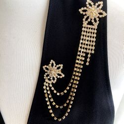 Elegant Double Rhinestone Brooch with Draped Chains – Couture Statement Piece$12Woodbridge, VA