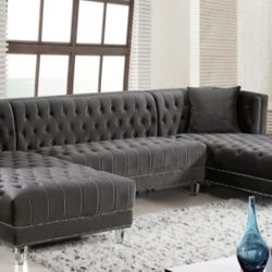 Julia Velvet / Metal Grey Modular Sectional (8 Boxes)