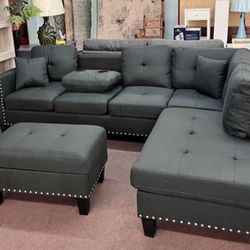 Brand New Charcoal Linen Sectional Sofa +Storage Ottoman (New In Box) $680Wheaton-glenmont, MD