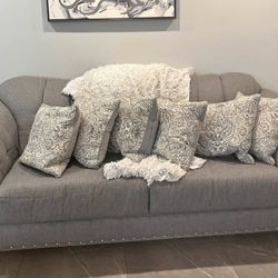 Grey Tufted Sofa | Nailhead | stylish & Confortable | Like new$350Richmond, VA