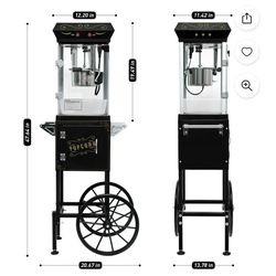 Upsimples Popcorn Machine with Cart Wheels 10 Oz Kettle Popcorn Maker Measuring 3 plastic spoon Home Theater Popcorn Machine Black $70$70Virginia Beach, VA