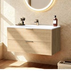 36 Inch Bathroom Vanity with Sink, Modern Floating Bathroom Vanity with Resin Sink, 2 Large Storage Darwers, Wood Grain Texture Wall Mounted Vanity, G$140Virginia Beach, VA