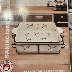3 Quart Square Stoneware Baking Dish & Decorative Metal Serving Stand$15Virginia Beach, VA