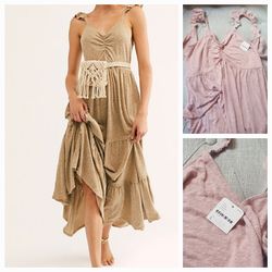 New Free People Linen Blend Midi Dress Size Large (Color Is Pink Salt like shown to right)$50Newport News, VA