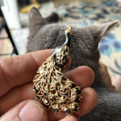 Vintage Gold Tone & Black Enamel Rhinestone Peacock Bird Brooch Pin Goldtone$20Virginia Beach, VA
