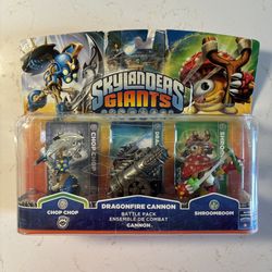 Skylander Giants 3 pack, chop chop, Dragonfire Cannon, and Shroomboom Open Box$10Virginia Beach, VA