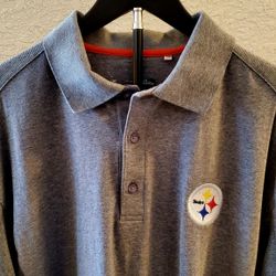 PITTSBURGH STEELERS MENS POLO SHIRT-SHORT SLEEVE-SIZE L-BY REEBOK-GRAY$20Moyock, NC