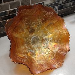 Antique 1920s Marigold Carnival Glass Bowl Two Flowers Pattern. 10” x 3.25”$30Chesapeake, VA