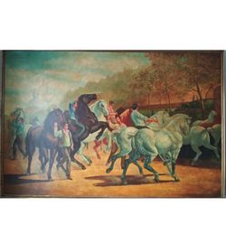 Antique Huge William Skilling Framed Oil Painting The Horse Fair