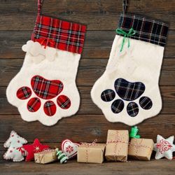 🆕️ 2 Pieces Christmas Pet Stockings Cat Dog Paw Pattern Buffalo plaid - Rd/Grn$15Chesapeake, VA