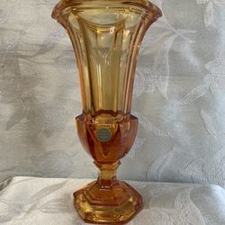 GLOWS! Friedrich Kristall Honey Amber Cadmium 24% Lead Crystal Trumpet Vase (Original Label, 2 Lbs)$50Virginia Beach, VA